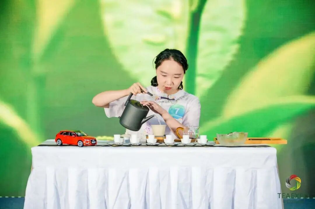 決賽現(xiàn)場,茶香氤氳,韻致高雅。選手們依序登場,在限時(shí)18分鐘內(nèi)完成主題闡述、茶藝演示與奉茶收具全過程。