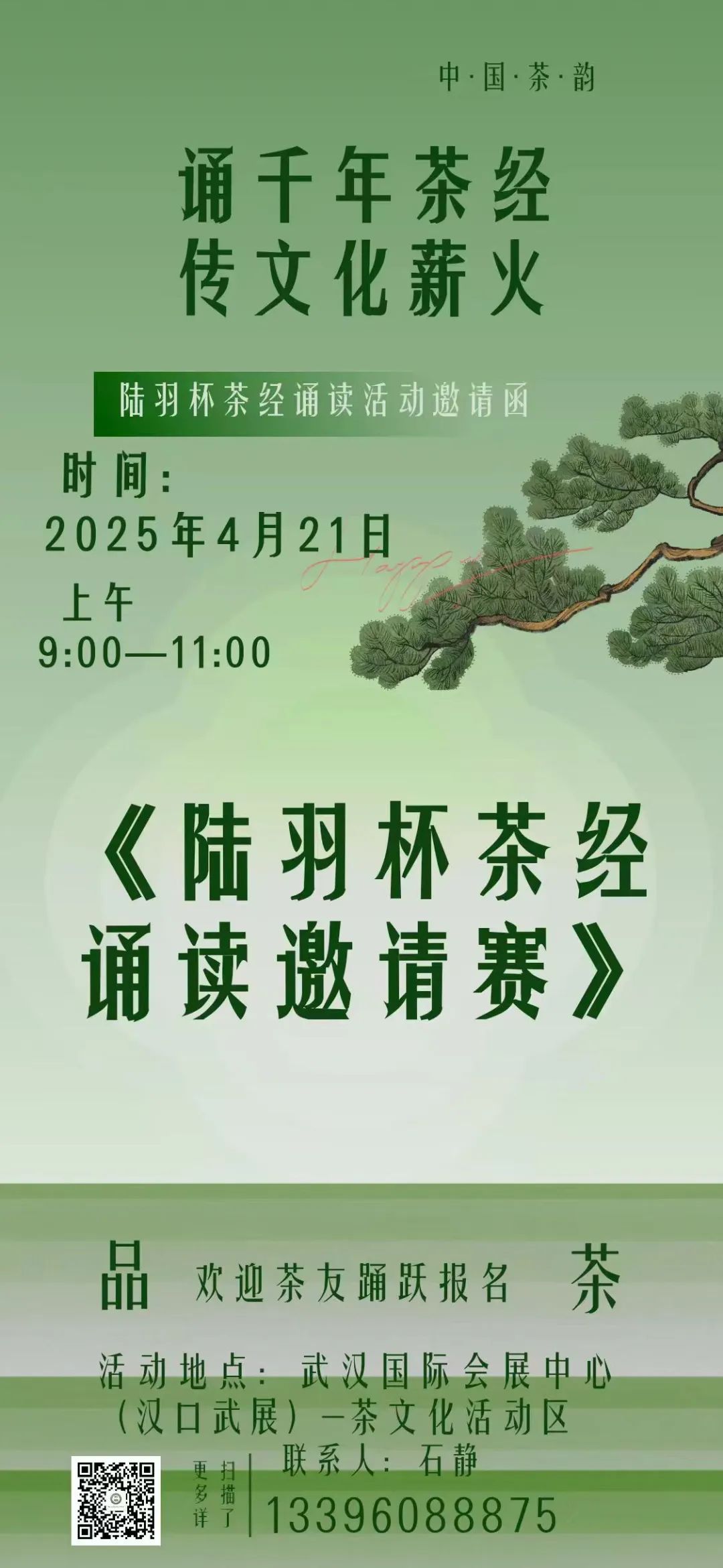 弘揚(yáng)中國茶文化,傳承唐代茶圣陸羽的《茶經(jīng)》精髓!展會特舉辦“陸羽杯《茶經(jīng)》誦讀活動,誦千年茶經(jīng),傳文化薪火,讓更多人熱愛中國傳統(tǒng)文化!