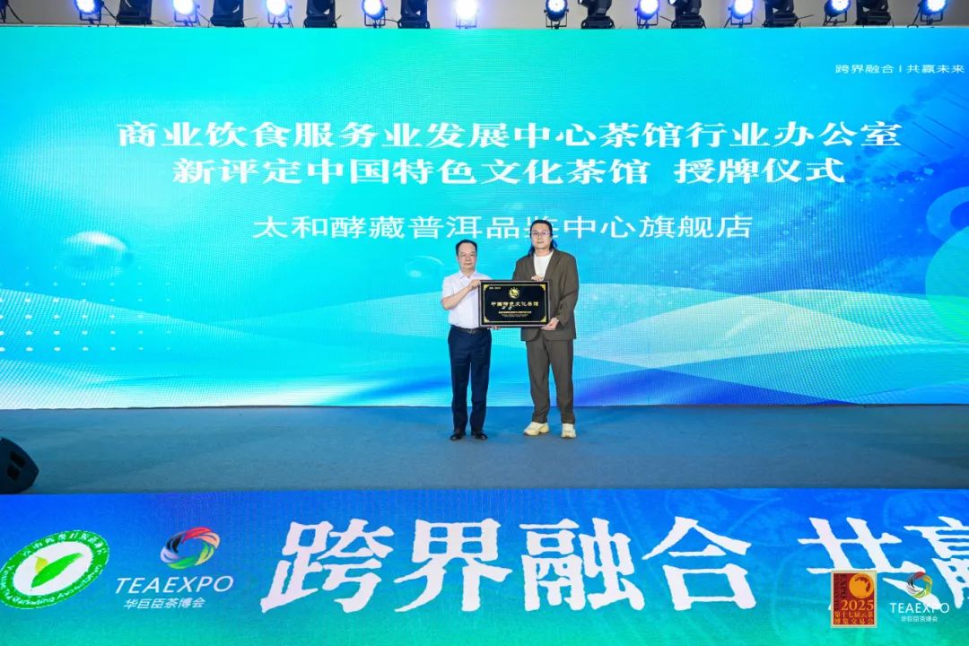 在活動現(xiàn)場還舉辦了授牌儀式和中國星級茶館頒獎儀式。宣布新成立秘書處——普洱秘書處和麗江秘書處,新評定的中國特色文化茶館為:普洱太和酵藏普洱品鑒中心旗艦店。