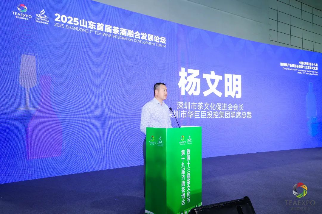 深圳市茶文化促進(jìn)會(huì)會(huì)長、華巨臣會(huì)展集團(tuán)聯(lián)席總裁楊文明在致辭時(shí)表示,茶與酒,作為中華文明的兩大瑰寶,既是千年文化的傳承,更是時(shí)代創(chuàng)新的載體。當(dāng)前,消費(fèi)升級與產(chǎn)業(yè)融合的大潮奔涌向前,茶酒跨界正成為新風(fēng)口、新賽道。2025山東首屆茶酒融合發(fā)展論壇,正是要匯聚行業(yè)力量,打通產(chǎn)業(yè)鏈條,推動(dòng)茶酒產(chǎn)業(yè)從獨(dú)立發(fā)展到產(chǎn)業(yè)融通,助力山東乃至全國的茶酒產(chǎn)業(yè)高質(zhì)量發(fā)展!