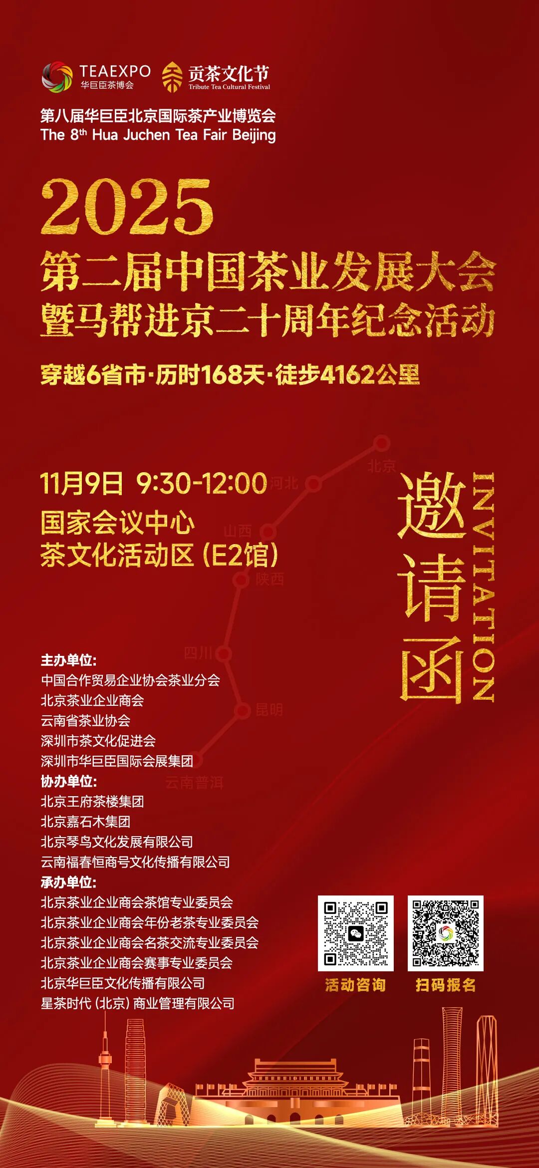 11月6日至9日,第八屆華巨臣北京茶博會期間將同期舉辦2025貢茶文化節(jié)!本次文化節(jié)陣容強大,華巨臣集團聯袂中國貢茶聯盟
